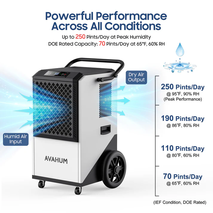• 1 × AVAHUM 250-Pint Commercial Dehumidifier (AM270P)