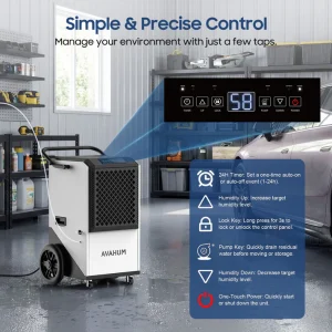 The AVAHUM 250-Pint Commercial Dehumidifier with Pump (Model AM270P) is engineered for high-capacity humidity control across basements, warehouses, garages, restoration sites, and commercial environments requiring consistent moisture management.