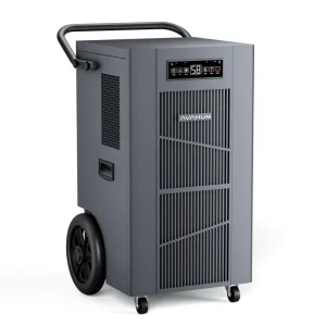 The AVAHUM 320-Pint Commercial Dehumidifier with Pump delivers powerful humidity control for industrial, commercial, and large residential environments. Designed to cover areas up to 9,000 sq. ft., it removes up to 320 pints of moisture per day under saturated conditions and 230 pints per day at AHAM conditions, making it ideal for basements, warehouses, factories, gyms, laboratories, and flood restoration projects.