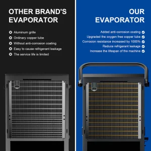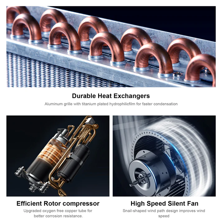The integrated built-in condensate pump allows continuous drainage operation for long-duration use without manual water removal. A gravity drainage option is also supported, providing flexible installation depending on site requirements.